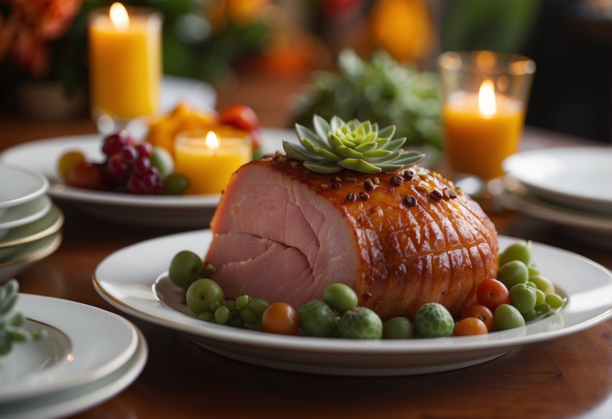 The ham is coated with a blend of honey, brown sugar, and butter. This mixture caramelizes wonderfully, producing a glossy, mouth-watering glaze.